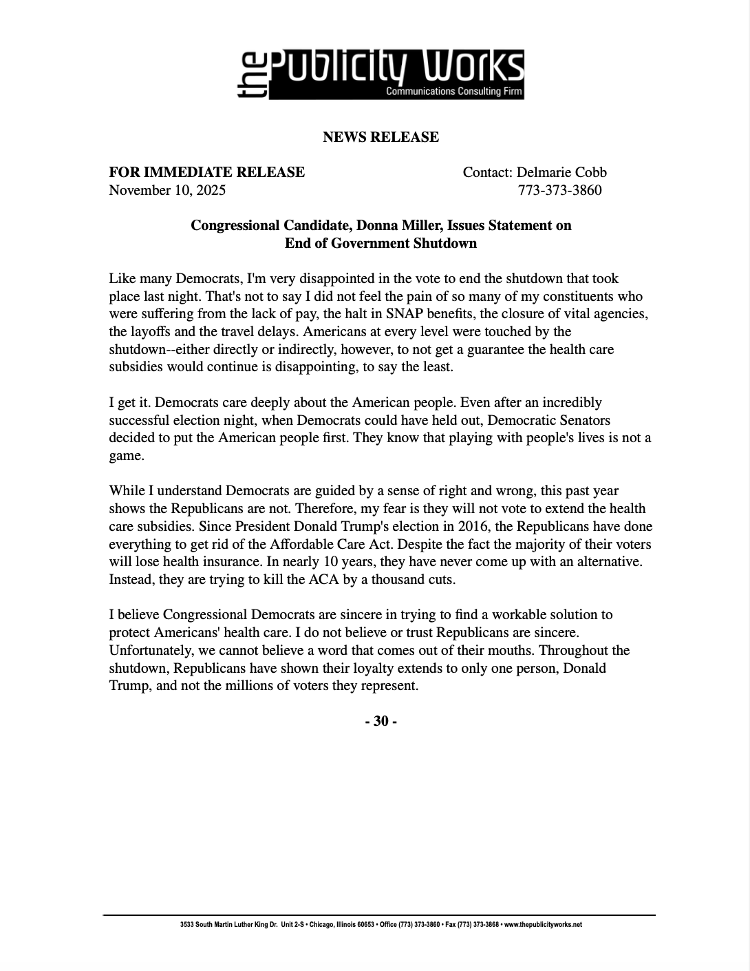 On October 10, 2025, Cook County Commissioner Donna Miller joined the Veterans Assistance Commission of Cook County (VACCC) for a press conference at the VACCC offices in Chicago to reaffirm that county-level Veteran services remain open and fully operational despite the ongoing federal government shutdown…